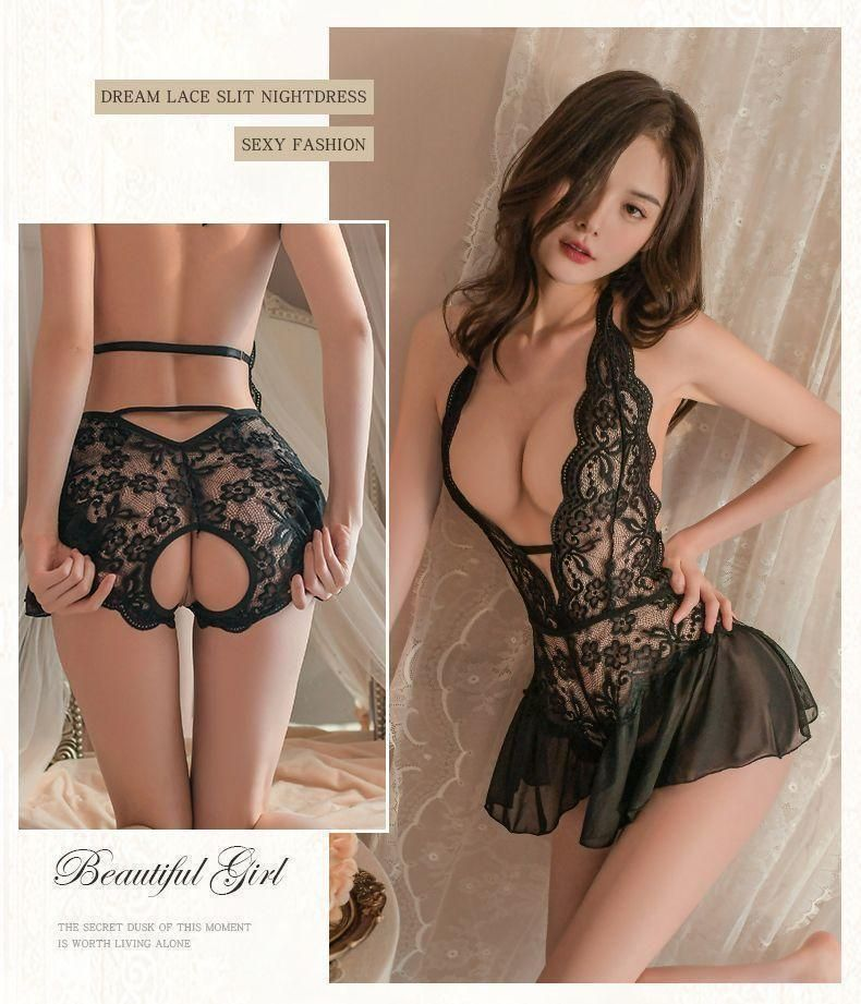 1 : レースとチュールのスリップドレス。 ユニークなオープンバックデザイン、目を引く透け感のある生地! まさに息を呑むほど美しい!デートにぴったりの一着です!